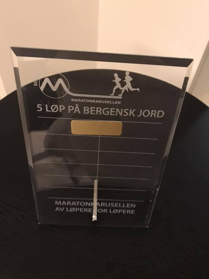 - Deltakelse på 5 maraton - du får merke til plakett merket med 5 maraton og årstall.